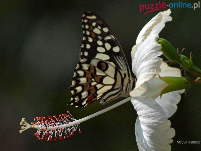 Puzzle Kwiat, Motyl, Biały, Hibiskus