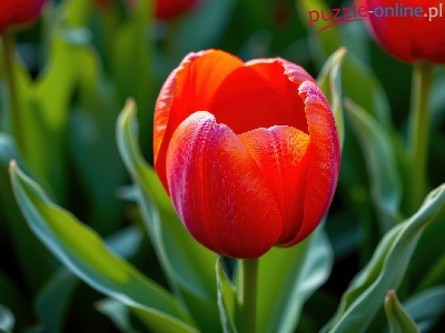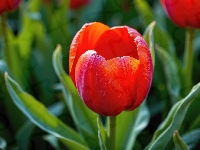 Tulipan, Kwiat, Czerwony, Zbliżenie, Listki