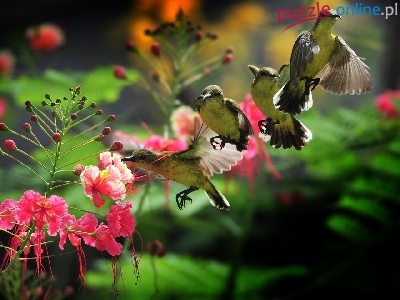 Puzzle Cztery, Kwiat, Kolibry