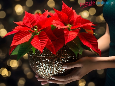 Grafika, Gwiazda betlejemska, Kwiat, Doniczka, Dłonie
