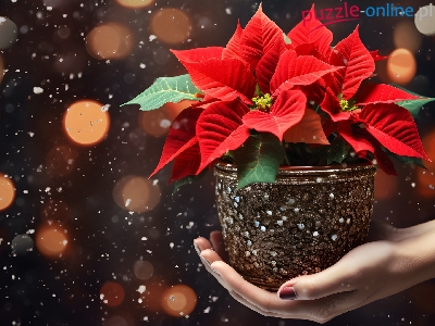Puzzle Doniczka, Kwiat, Gwiazda betlejemska, Dłoń