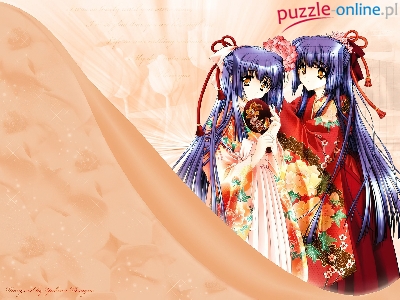 Puzzle kwiat, Cg Art, kimono, dziewczyny