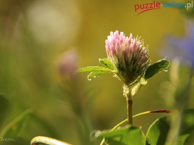 Puzzle Kwiat, Różowa, Koniczyna, Krople