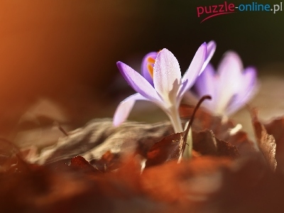 Puzzle Kwiat, Fioletowy, Krokus, Liście
