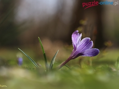 Puzzle Kwiat, Fioletowy, Krokus, Wiosna