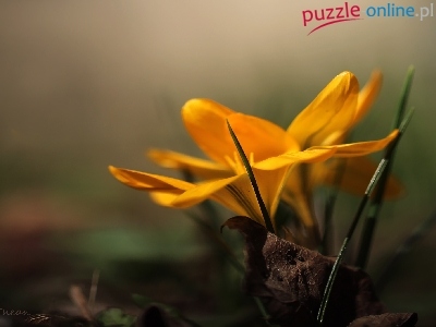 Puzzle Kwiat, Żółty, Krokus, Wiosna