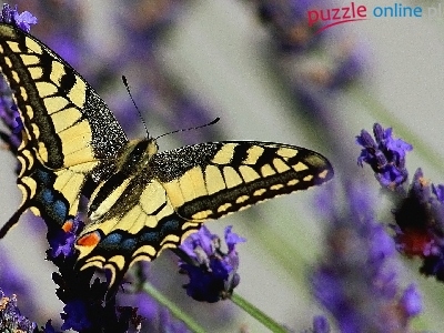 Puzzle Kwiat, Motyl, Paź Królowej, Lawendy