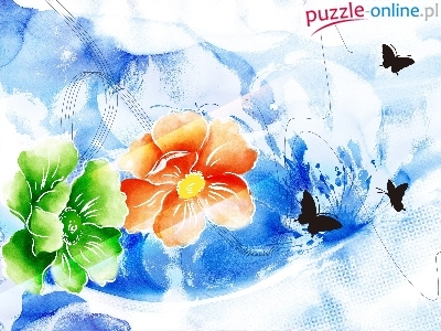 Puzzle Kwiat, Zielony, Pomarańczowy, Motyle