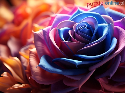 Puzzle Róża, Niebiesko-różowa, Kwiat