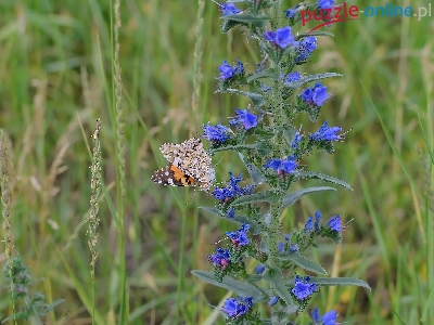 Puzzle Motyl, Kwiat, Trawa, Rusałka osetnik