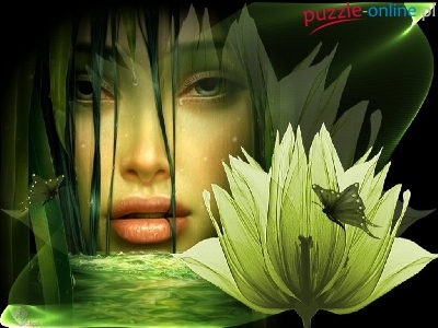Puzzle Kwiat, Dziewczyna, Woda, Motyl