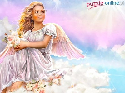 Kwiatki, Blask, Dziewczyna, Anioł, Chmury