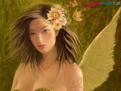 Puzzle Kwiatki, Kobieta, Anioł, Motyle