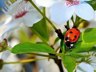 Kwiatki, Gałązka, Białe, Biedronka