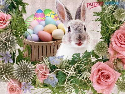 Puzzle Kwiatki, Wielkanoc, Kolorowe, Kolorowe