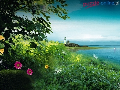 Puzzle Kwiatki, Latarnia Morska, Morze, Roślinność