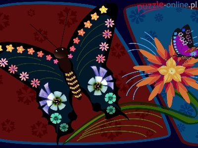 Puzzle Kwiatki, Fantazyjne, Motyle, 2D