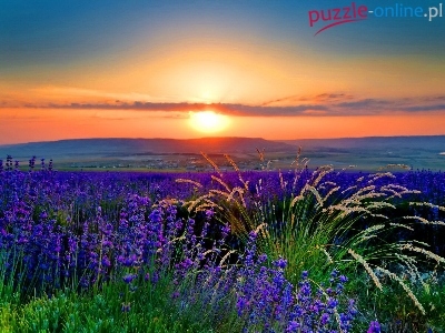 Puzzle Kwiatki, Zachód, Słońca, Trawa