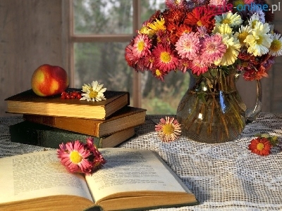 Kwiatów, Serweta, Książki, Bukiet, Wazon