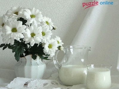 Kwiatów, Biały, Serwetka, Dzbanek, Bukiet, Mleko