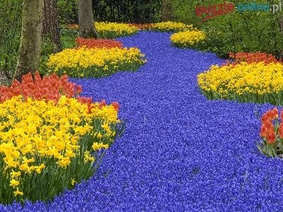 Kwiatów, Tulipany, Las, Dużo, Żonkile