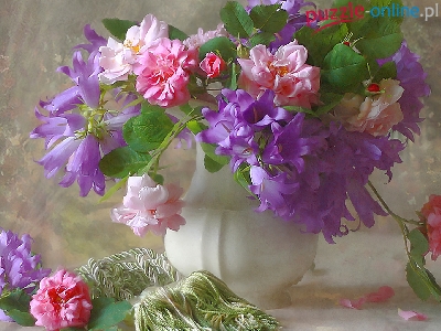 Kwiatów, Różowych, Dzban, Bukiet, Fioletowych, Biały