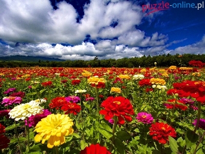 Puzzle Kwiatów, Pole, Kolorowych, Chmury