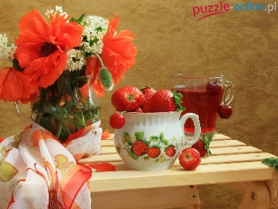 Puzzle Kwiatów, Bukiet, Polnych, Truskawki