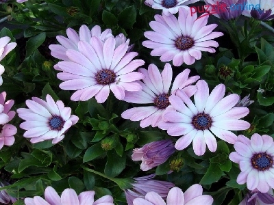 Kwiatuszki, Listki, Fioletowo, Białe, Zielone