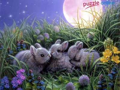 Kwiaty, Króliki, Księżyc, Trzy, Łąka, Noc