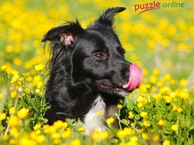 Puzzle Kwiaty, Pies, Łąka, Kaczeńce