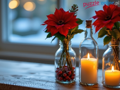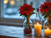 Åšwiece, Gwiazda betlejemska, Kwiaty, Szklane, Okno, Naczynia