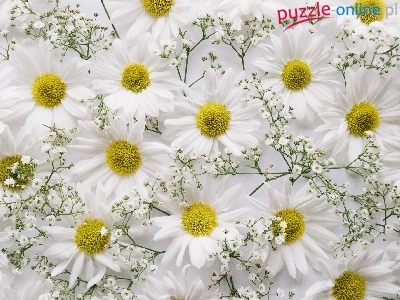 Kwiaty, Tekstura, Chryzantemy, Białe, Gipsówka