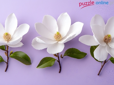 Trzy, Kwiaty, Białe, Listki, Magnolie