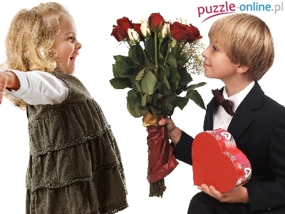 Puzzle Kwiaty, Dziewczynka, Chłopiec, Serduszko