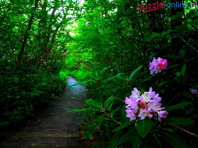 Puzzle Kwiaty, Las, Ścieżka, Rododendron
