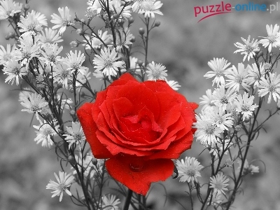 Puzzle Czerwona, Kwiaty, Róża