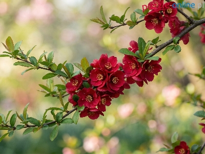 Gałązki, Kwiaty, Czerwone, Pigwowiec, Listki