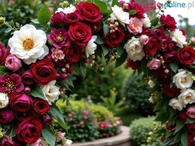 Białe, Ogród, Czerwone, Kwiaty, Łuk, Kwiatowy, Róże