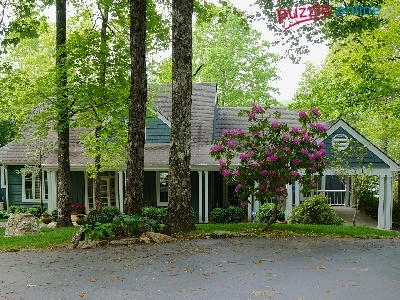 Puzzle Kwiaty, Zielony, Dom, Drzewa