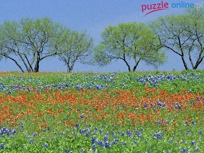 Puzzle Kwiaty, Łąka, Drzewa, Wiosna