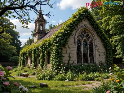 Puzzle Drzewa, Kaplica, Bluszcz, Kwiaty