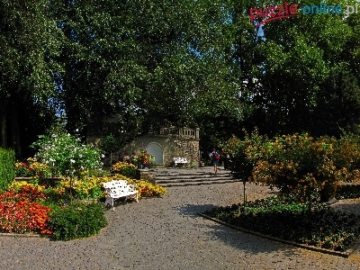 Puzzle Kwiaty, Park, Drzewa, Ławka