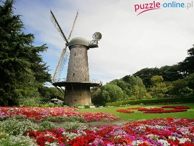 Puzzle Drzewa, Kwiaty, Wiatrak