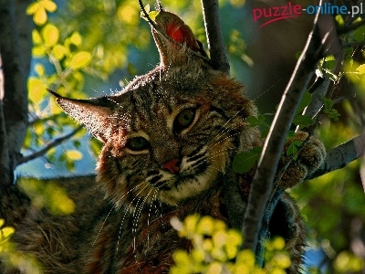 Puzzle Kwiaty, Ryś, Drzewo, Liście