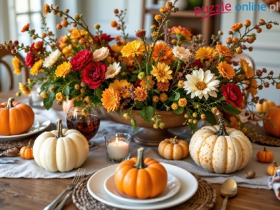 Puzzle Stół, Kwiaty, Dynie, Grafika AI