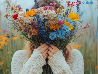 Puzzle Kwiaty, Bukiet, Dziewczyna