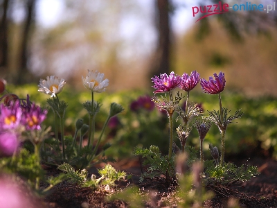 Puzzle Fioletowe, Sasanki, Białe, Kwiaty