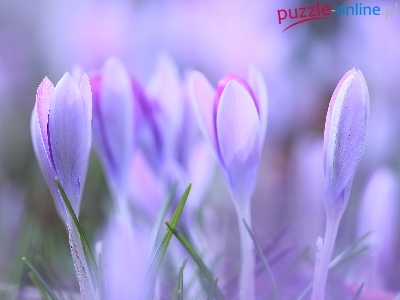 Puzzle Kwiaty, Krokusy, Fioletowe, Rozmycie