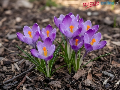 Krokusy, Kwiaty, Fioletowe, Kora, Ziemia